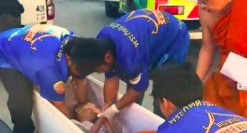 La scène plonge la famille dans un choc total. Une nièce raconte son cri quand elle voit la poitrine bouger. Un autre membre dit qu’il sent un souffle faible. Les moines demandent de stopper immédiatement le processus. Ils appellent un véhicule médical. Les équipes arrivent au temple. Elles prennent en charge Chontirot encore en vie.